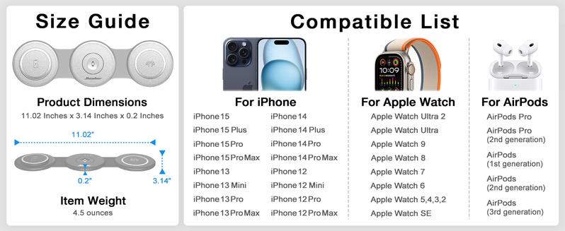 Compatibilité universelle : fonctionne avec tous les appareils Qi (Apple, Samsung, Xiaomi, Huawei, etc.).